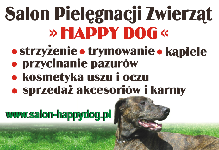 Salon Pielęgnacji Zwierząt HAPPY DOG jak sama nazwa wskazuje to miejsce gdzie każdy pies będzie HAPPY J - takie jest motto i założenie funkcjonowania salonu i świadczonych w nim usług.